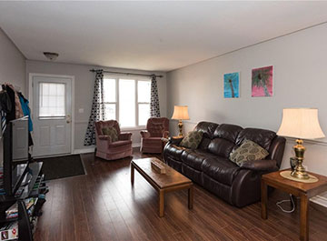 Sofa, chairs, coffee table, end tables, lamps, dining room table and chairs, window coverings.